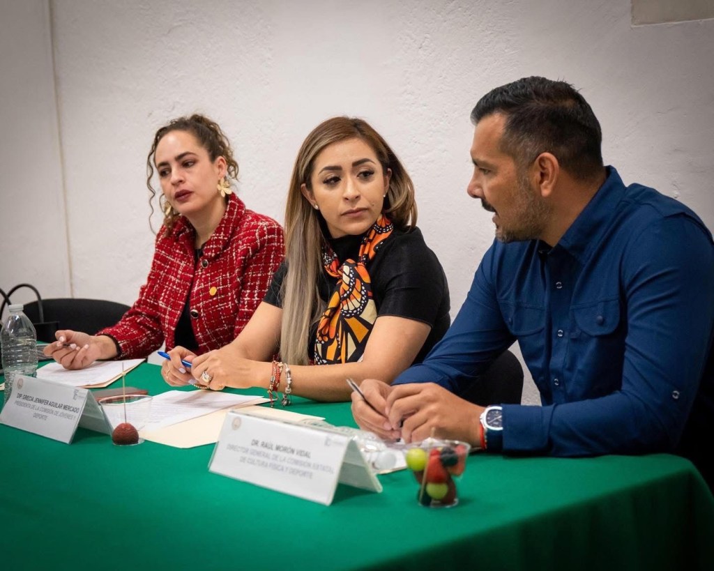 Con el compromiso de fortalecer las políticas públicas en favor de las y los jóvenes, la diputada Grecia Aguilar Mercado, presidenta de la Comisión de Juventud y Deporte del Congreso del Estado, encabezó la reunión de trabajo para analizar la glosa del Cuarto Informe del gobernador Alfredo Ramírez Bedolla.