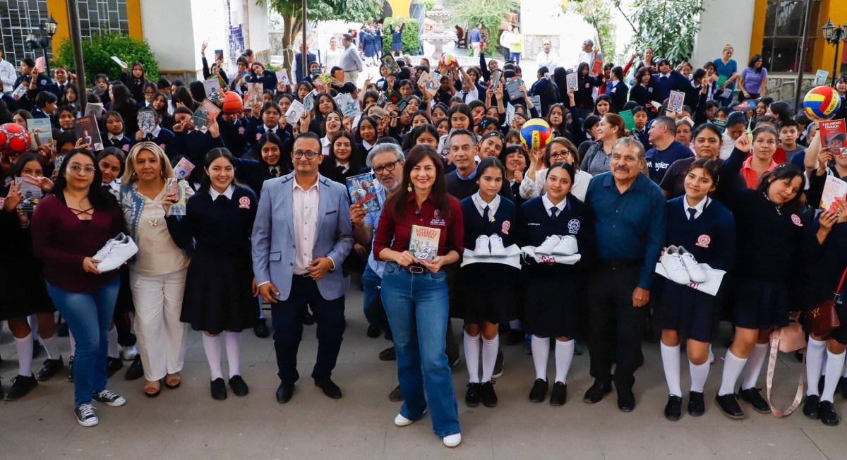 Al presidir la entrega de tenis de Jalo a Estudiar, Jalo por la Paz a más de 320 estudiantes del histórico internado femenino, la titular de la Secretaría de Educación del Estado (SEE) subrayó que estas acciones forman parte de una política integral en favor de las mujeres que se forman en las aulas de nuestro estado.