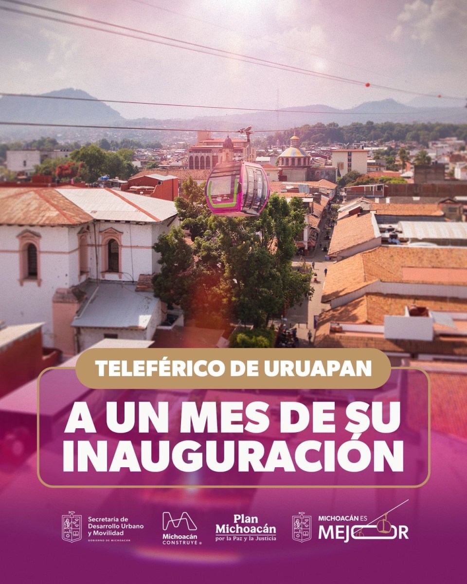 Estamos exactamente a un mes de que se inaugure el teleférico de Uruapan, que se proyecta para el próximo 18 de abril, a partir de dicha fecha este sistema de transporte comenzará a ofrecer viajes seguros, rápidos e inclusivos a más de 118 mil usuarias y usuarios, informó la secretaria de Desarrollo Urbano y Movilidad, Gladyz Butanda Macías.