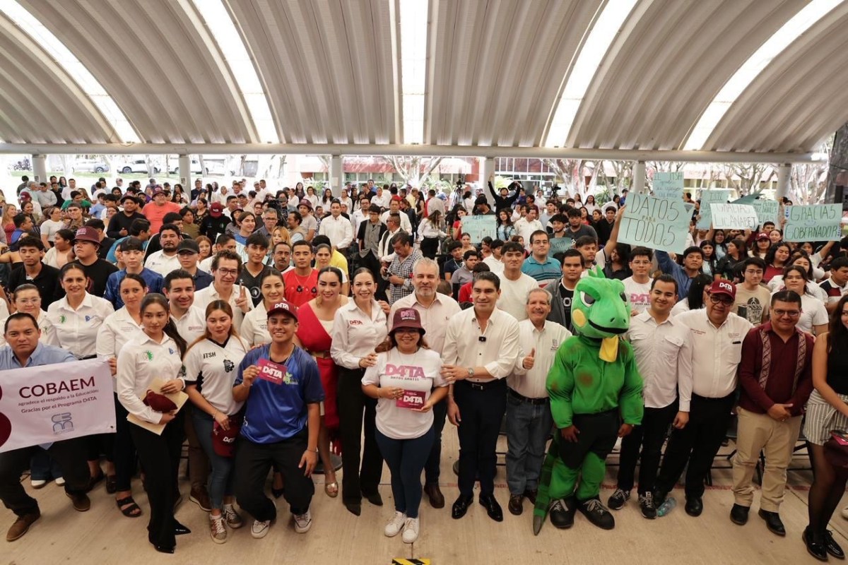 “No existe otro estado del país que esté otorgando este apoyo a estudiantes de preparatorias, institutos tecnológicos y universidades públicas”, destacó Ramírez Bedolla ante los jóvenes de este plantel, donde el 60 por ciento de su matrícula proviene del estado de Guerrero.
