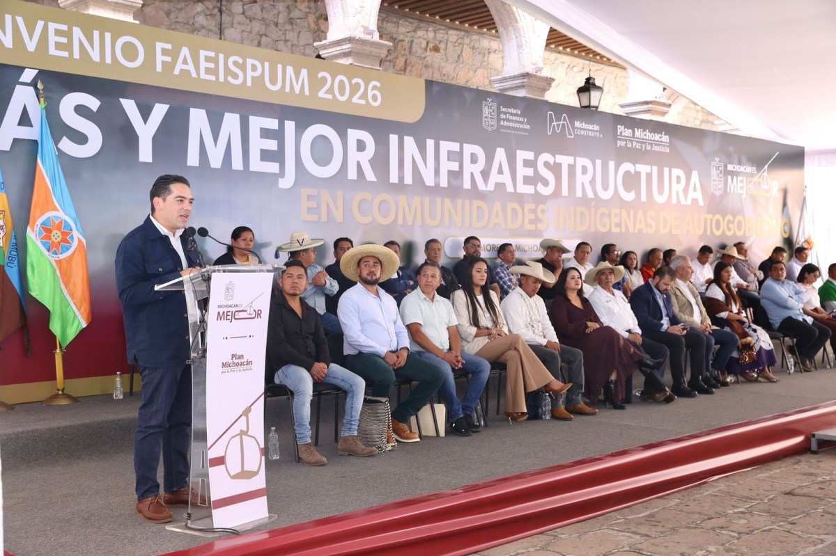 Este año, todas las comunidades indígenas con autogobierno de Michoacán accederán a recursos para la construcción de obras públicas en beneficio directo de sus habitantes, comprometió el gobernador Alfredo Ramírez Bedolla, al firmar el convenio del Fondo de Aportaciones Estatales para la Infraestructura de los Servicios Públicos Municipales (Faeispum) con las primeras 29 comunidades que se rigen por usos y costumbres.