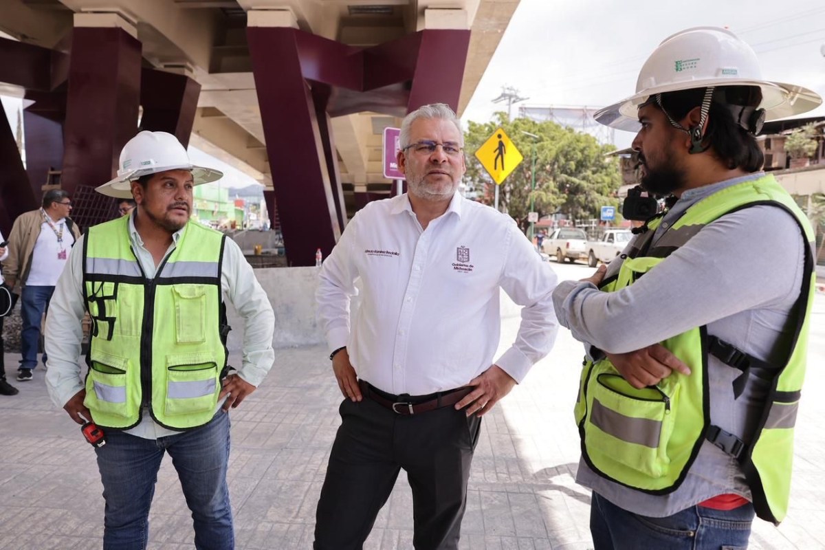 En su recta final de construcción, el gobernador Alfredo Ramírez Bedolla supervisó los últimos detalles del puente superior vehicular “La Hielera”, en Uruapan, que a su propuesta llevará el nombre del expresidente municipal, Carlos Manzo, y que será inaugurado de manera oficial el sábado 28 de marzo.