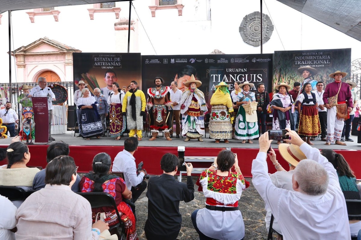 El gobernador Alfredo Ramírez Bedolla premió a las y los ganadores del 65 Concurso Artesanal de Domingo de Ramos en Uruapan, donde se repartió una bolsa de 1.6 millones de pesos para reconocer el talento de 178 personas artesanas.